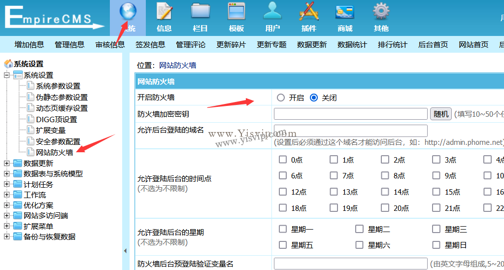 5、啟用網站安全防火墻。后臺>"系統設置">"網站防火墻"。根據需要設置一下參數(這里按照個人需求設置即可)