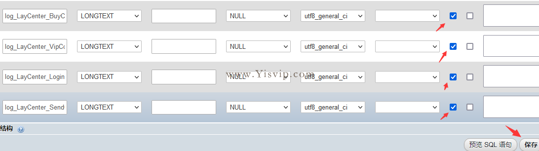 2.打開表: zbp_post表找到下面的4個表,勾選后選擇修改